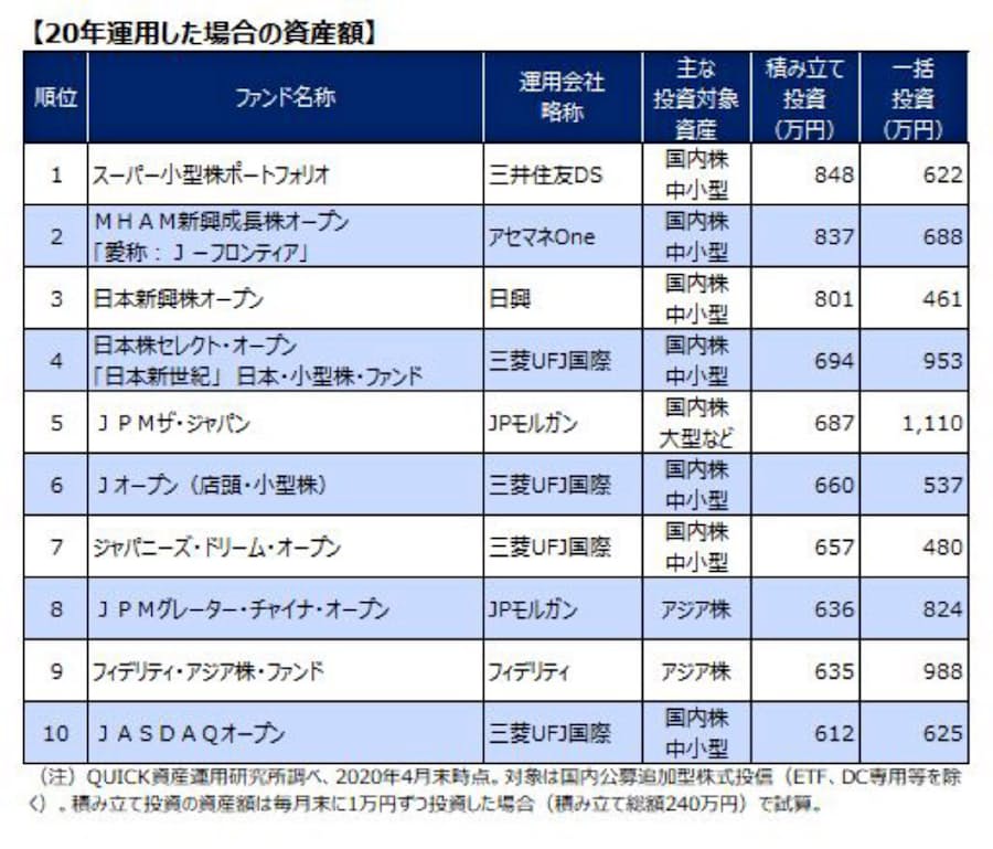中小型株式型 積み立てで健闘 投信ランキング 日本経済新聞