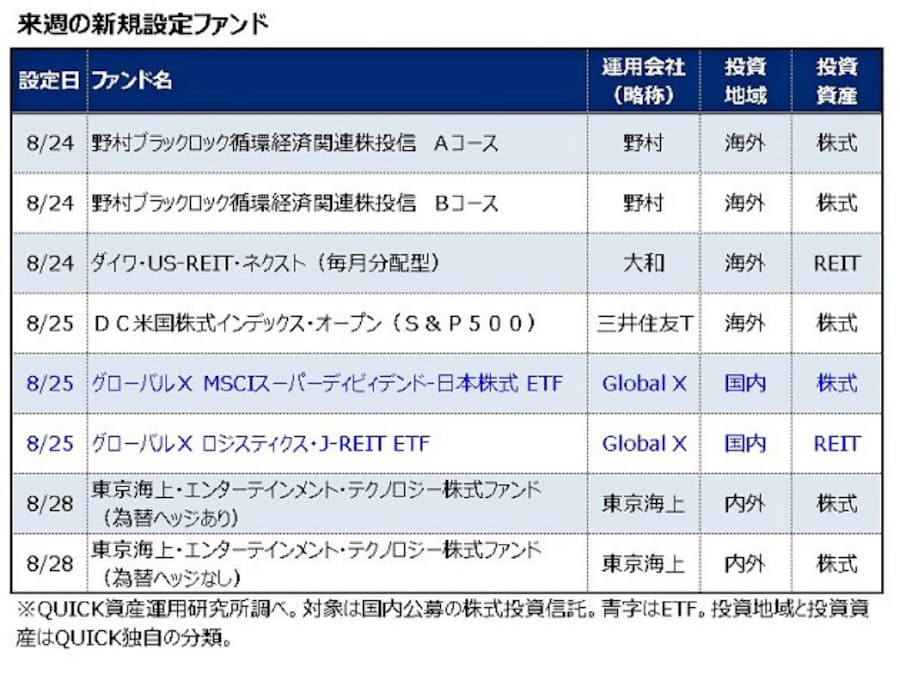 8月24 28日の新規設定ファンド 日本経済新聞